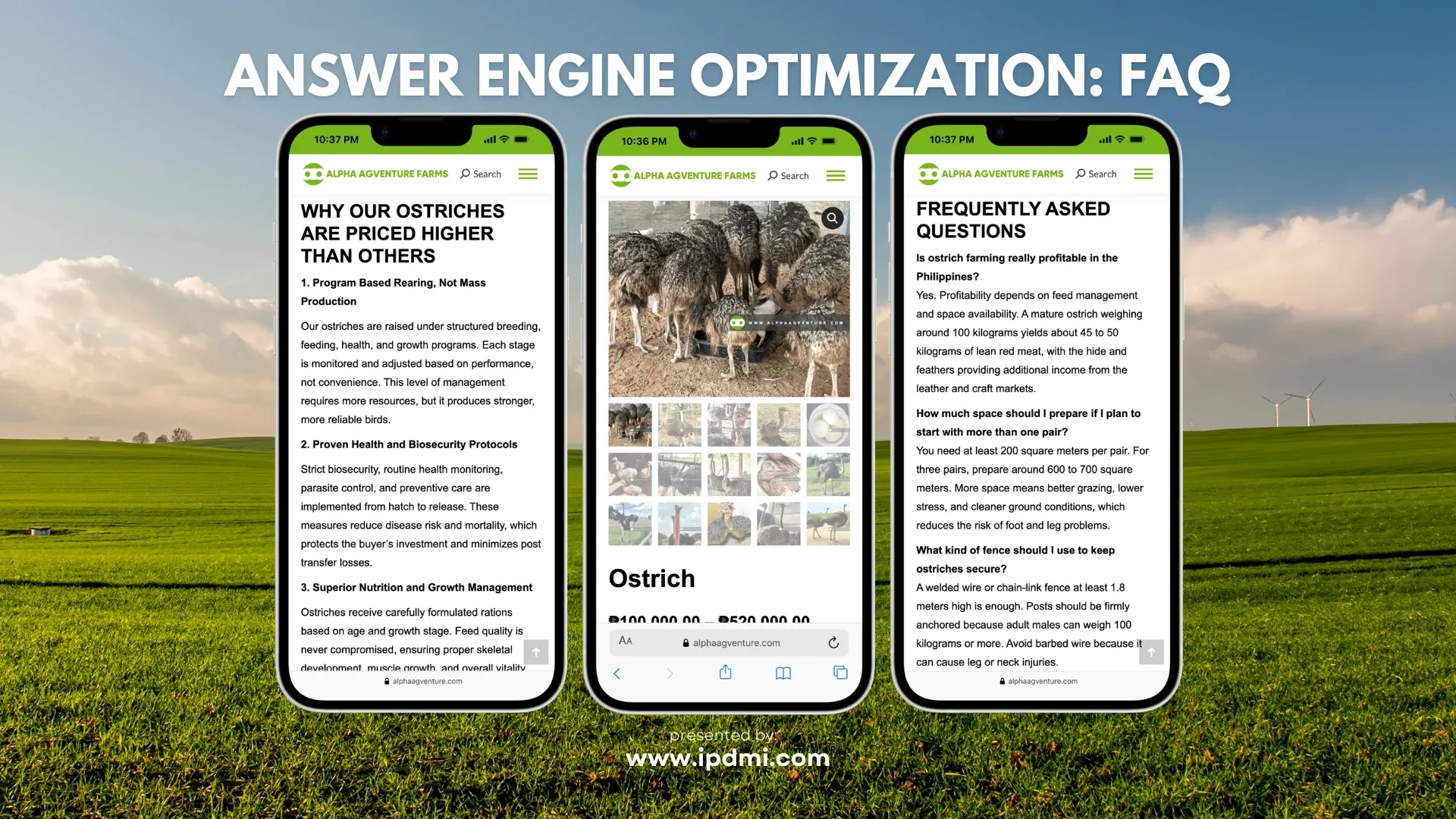 iPresence Digital Marketing led the website’s design, development, and content strategy for Alpha Agventure Farms. The team focused on building a platform that communicates information clearly to both readers and AI systems. This engagement emphasized consistent performance and reliability over temporary, short-term campaigns.