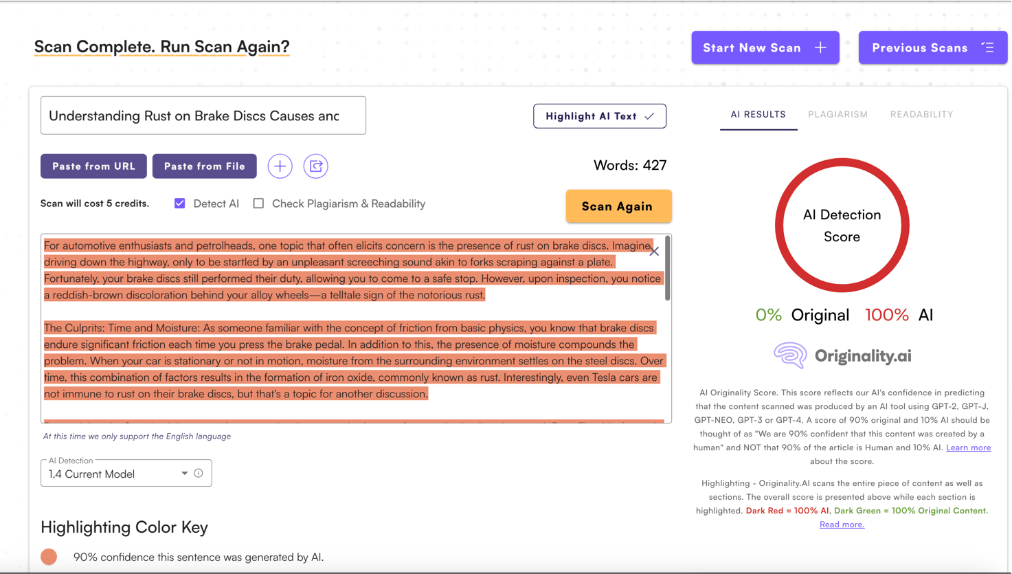 Disclaimer: Originality.AI did not sponsor this article. It is I who pay for their service.